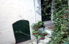 zur Wohnung und unten die Kellertür zu sehen, durch die man zum großen Bad